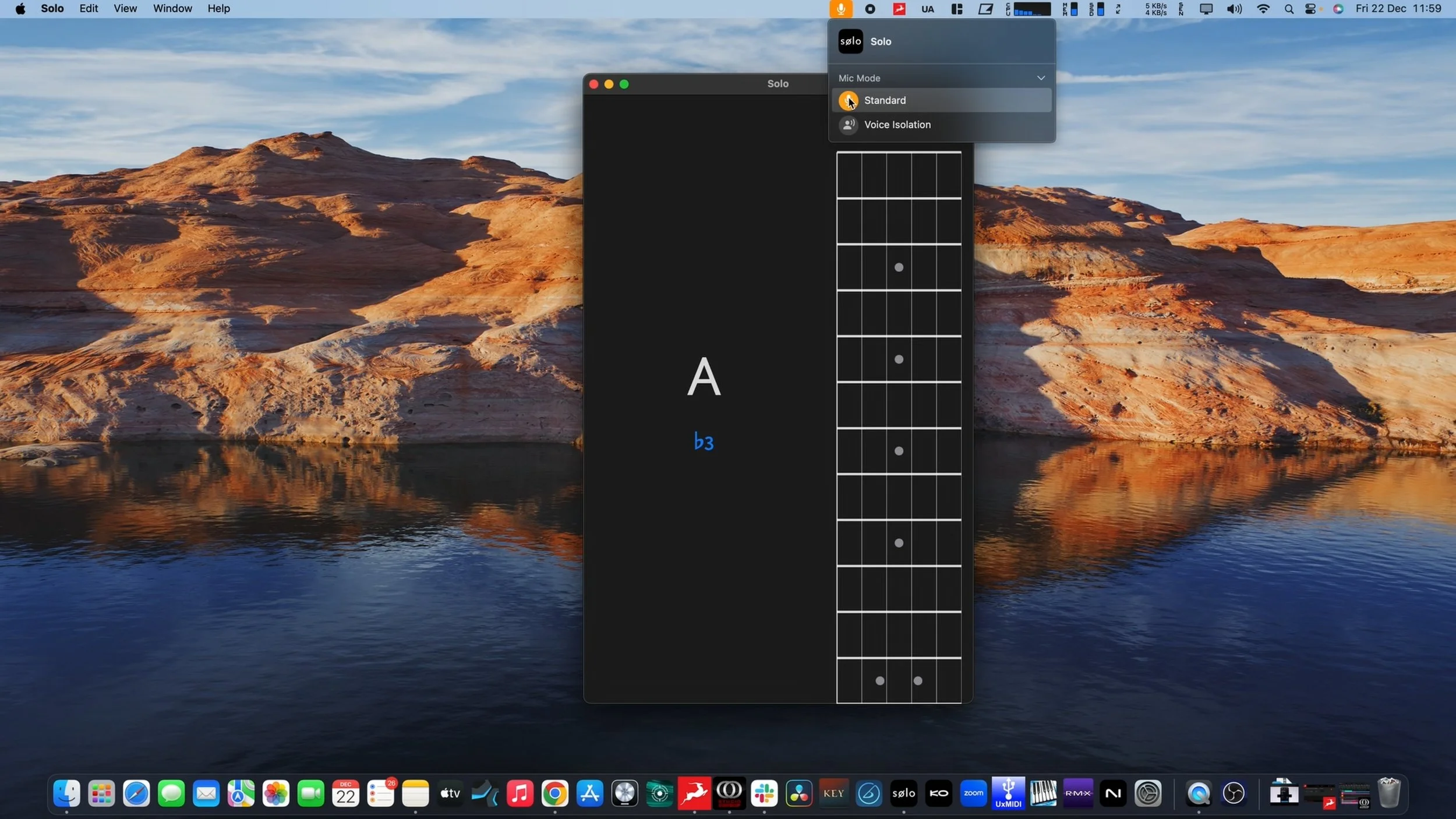 If you’re still having issues check your Mic Mode settings. Start a workout and check that your Mic Mode (orange, mic shaped icon in the menu bar at the top of your screen) is set to Standard and not Voice Isolation - unfortunately, due to the way Apple currently implement the Mic Mode feature in MacOS, you can only change this setting while Solo is either running a workout or calibrating Note Detection Sensitivity.